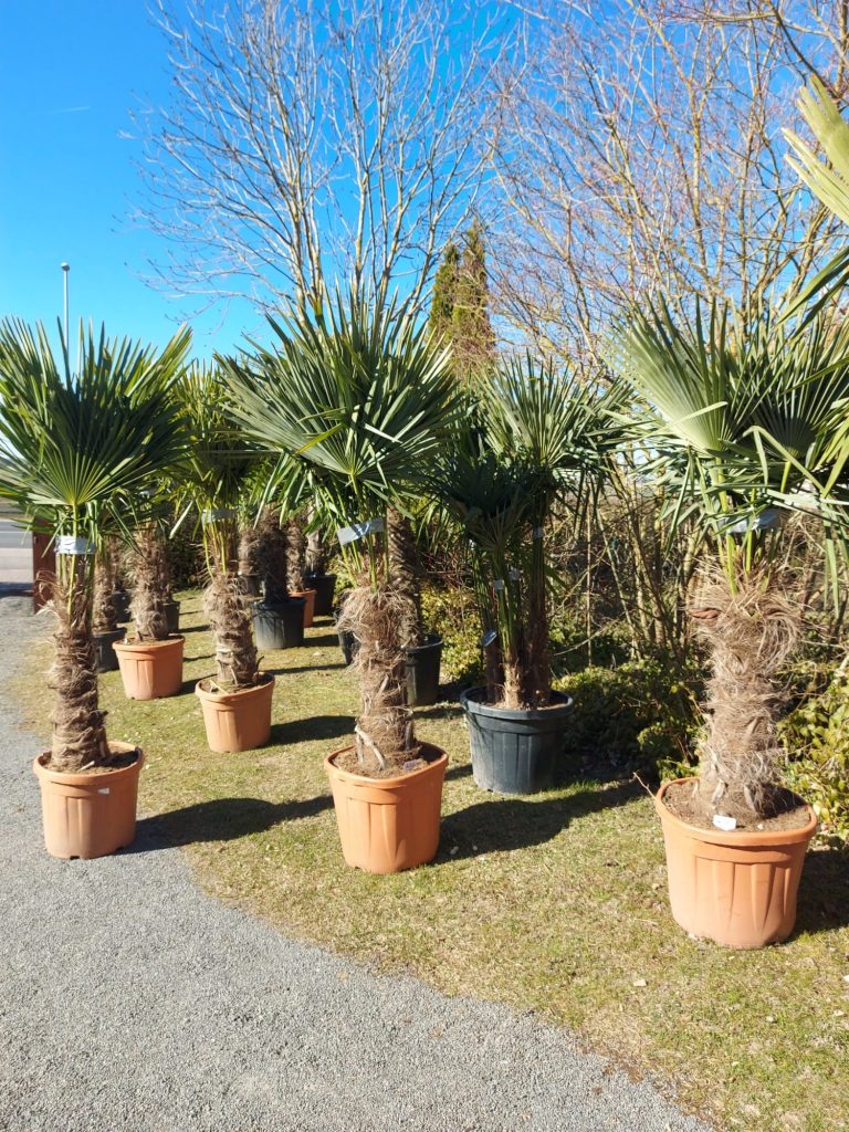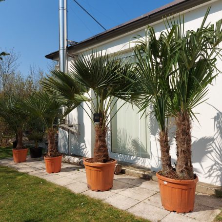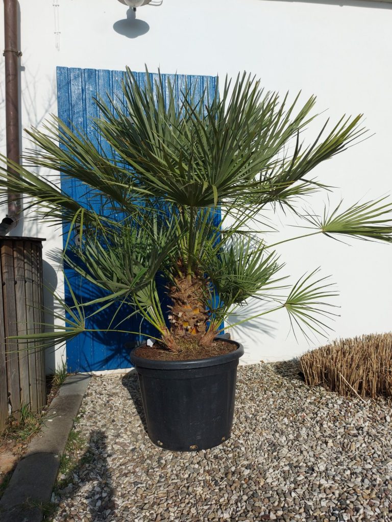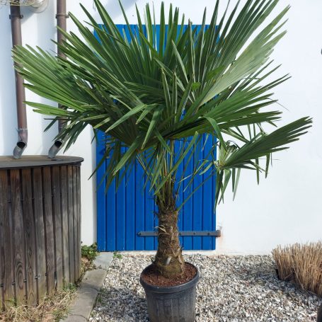 Die Trachycarpus fortunei, auch bekannt als Chinesische Hanfpalme, ist eine äußerst robuste und pflegeleichte Pflanze, die sich ideal für Gärten eignet. Diese Palme zeichnet sich durch ihre fächerförmigen, tiefgrünen Blätter aus, die in einer attraktiven Wuchsform angeordnet sind. Ihre kräftigen, statischen Stämme können Höhen von bis zu 10 Metern erreichen und weisen eine charakteristische, faserige Rinde auf. Trachycarpus fortunei ist besonders winterhart und verträgt Temperaturen bis zu -15 °C, wodurch sie nicht nur in milden Klimazonen, sondern auch in kühleren Regionen eine attraktive Wahl für Gartenbesitzer darstellt. Diese Pflanze verleiht jedem Garten ein tropisches Flair und ist eine hervorragende Ergänzung zu anderen Pflanzen und Gehölzen.