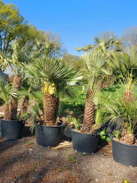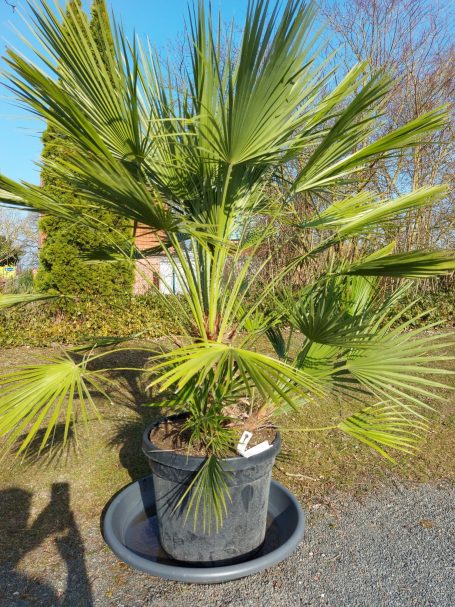 Die Washingtonia robusta, auch bekannt als die Kalifornische Fächerpalme, ist eine beeindruckende Pflanze für Gärten in Europa, wenn sie die richtigen Bedingungen erhält. Um sicherzustellen, dass die Washingtonia robusta auch in kälteren Monaten gesund bleibt, ist es wichtig, sie an einem geschützten Standort zu pflanzen und gegebenenfalls Frostschutzmaßnahmen zu ergreifen. Sie ist bis maximal minus 5 Grad Celsius winterhart. Sie mag keinen Schnee oder Rauhreif auf ihren Wedeln, daher ist es sinnvoll, sie frostfrei zu überwintern. Regelmäßige Pflege durch das Gießen im Sommer und das Düngen während der Wachstumsperiode trägt dazu bei, dass die Palme prächtig gedeiht. Mit der richtigen Aufmerksamkeit kann die Washingtonia robusta einen Hauch von tropischem Flair in jeden Garten bringen, selbst in den wechselhaften Klimazonen Europas.